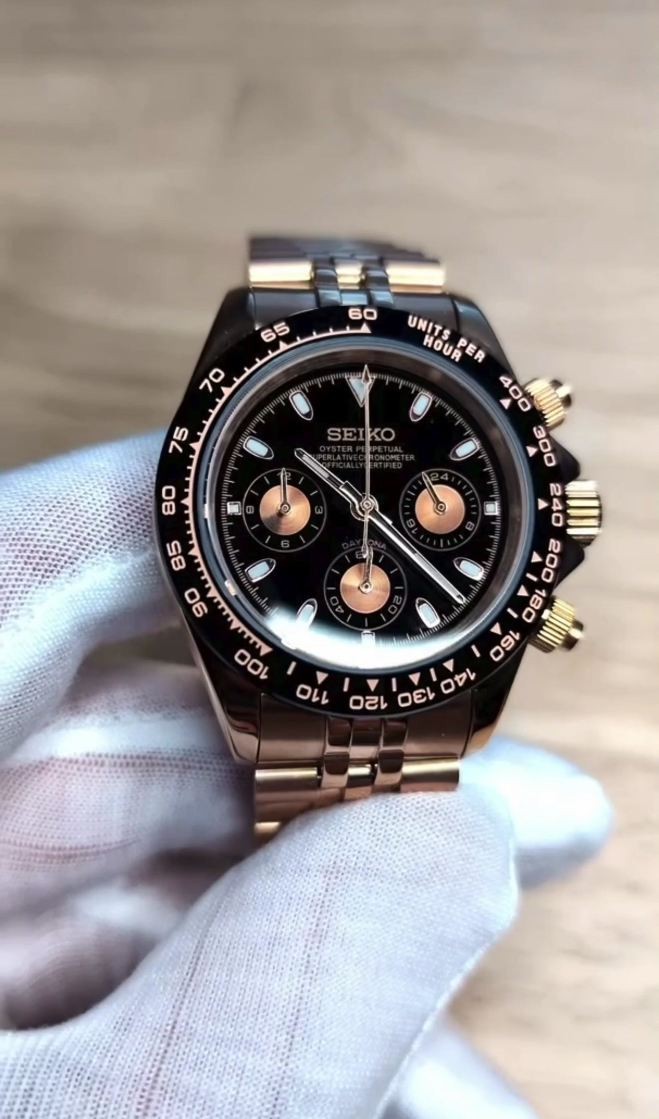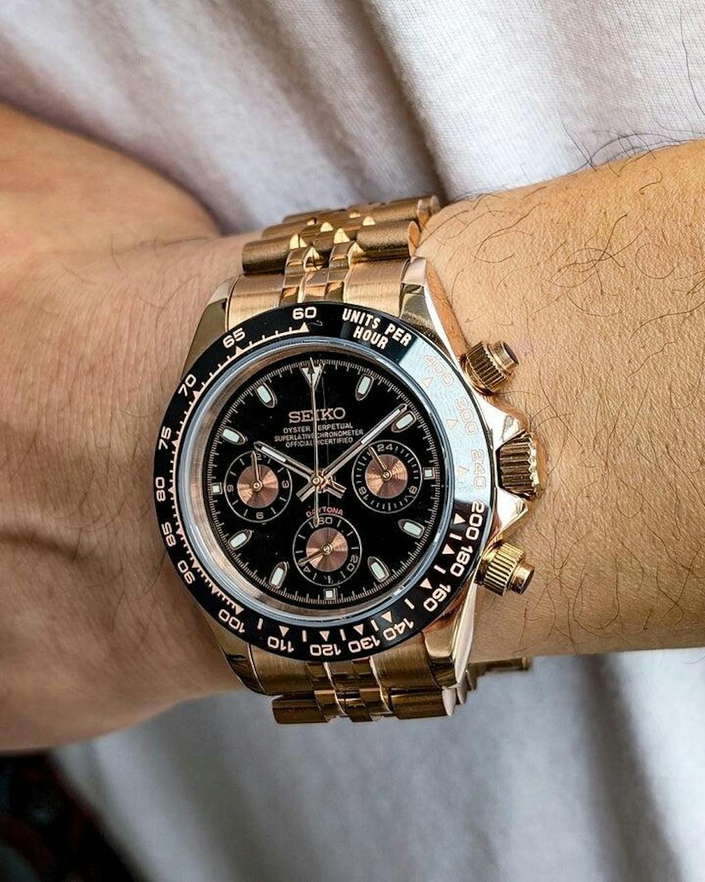Seiko Daytona Mod ‘Rose Gold Black Dial’ 40 - Jubilee Bracelet
