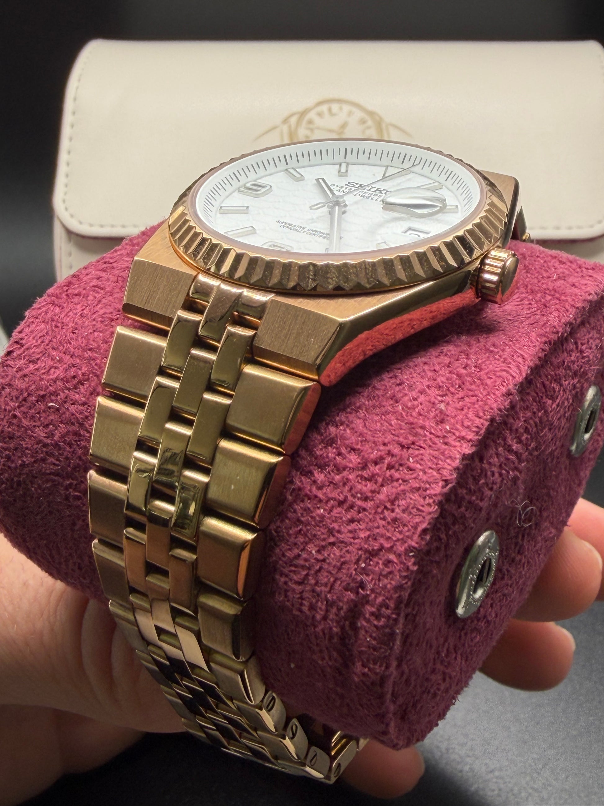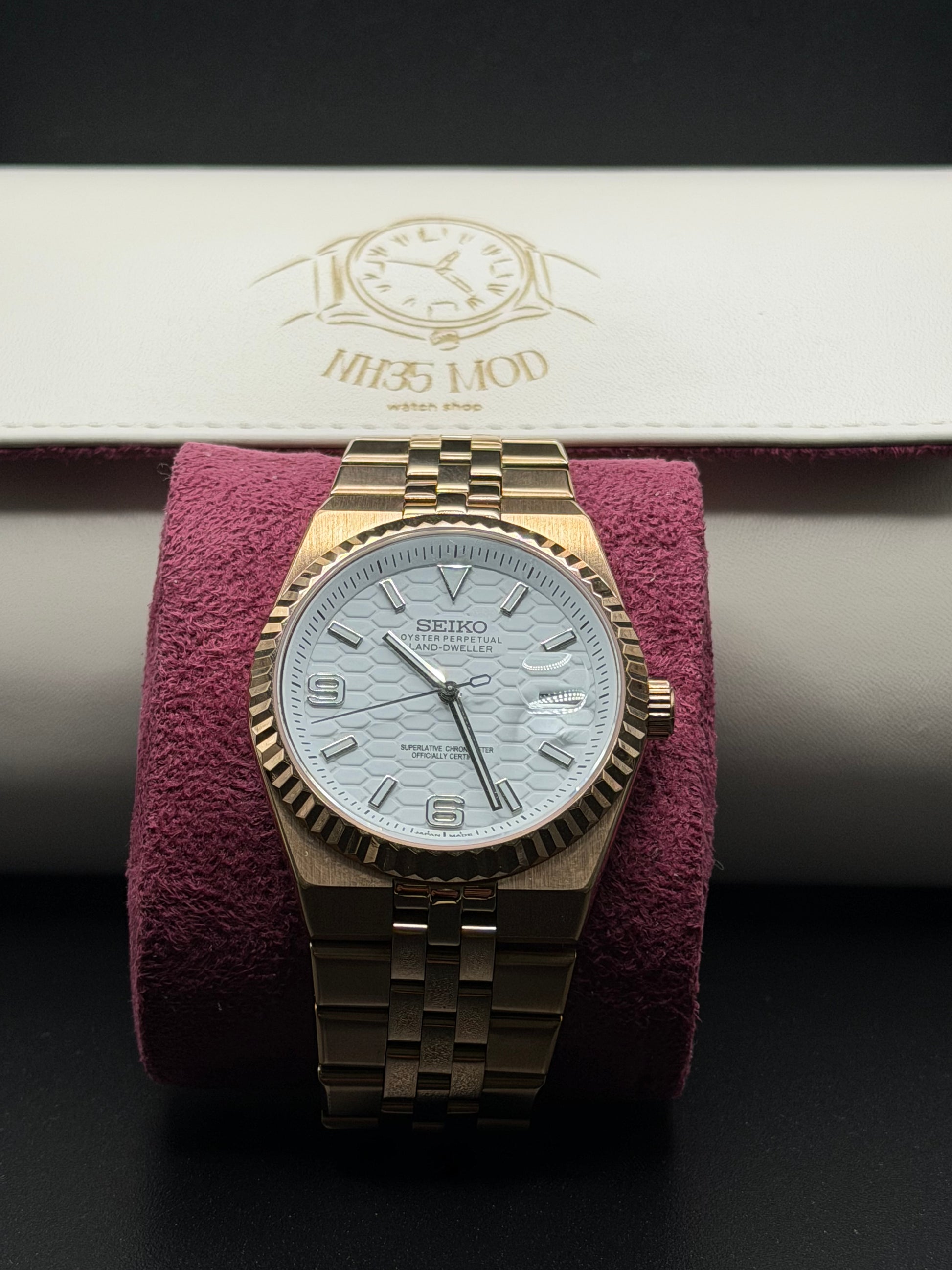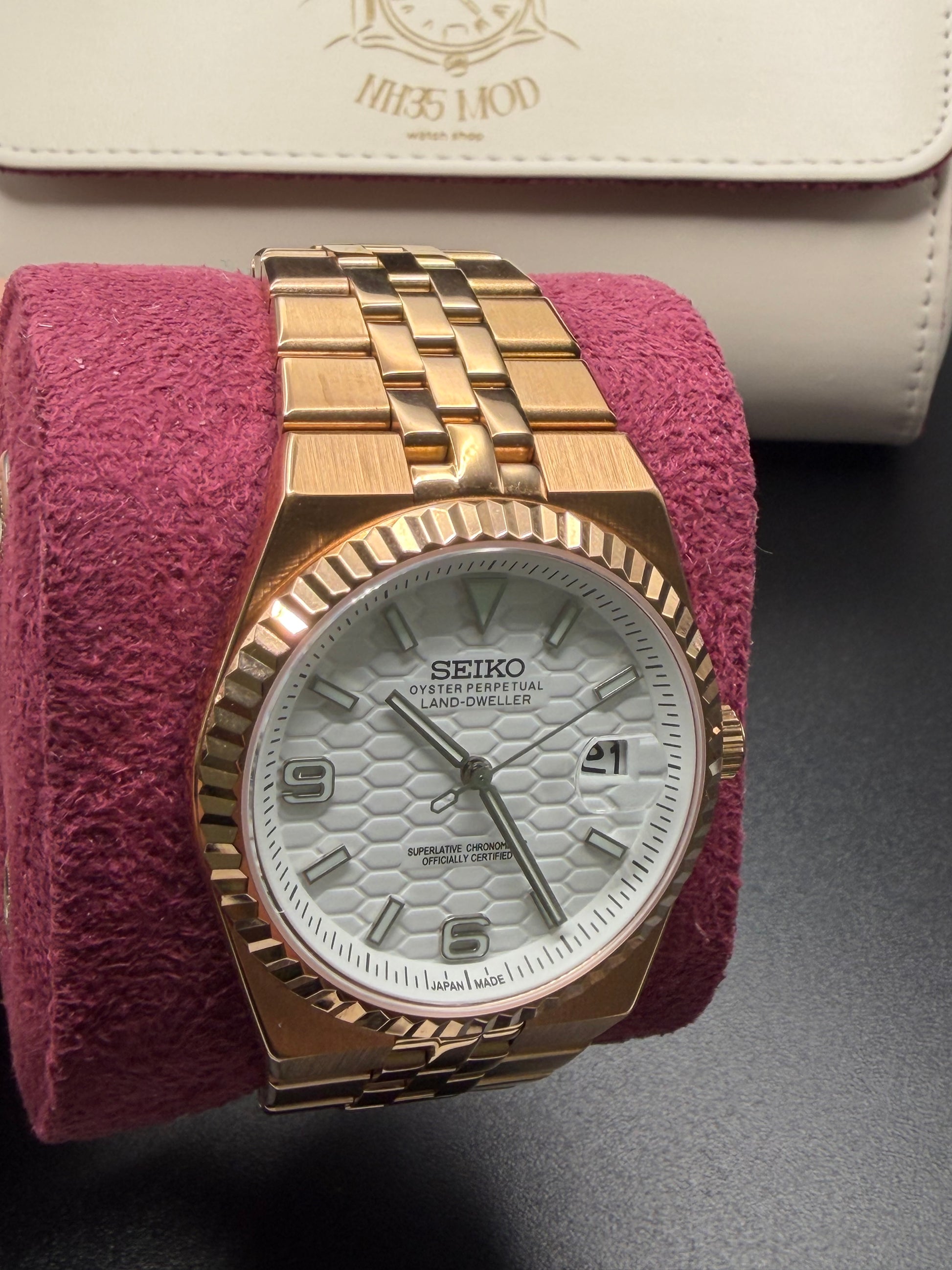 Seiko Land-Dweller Mod ‘Rose Gold/ Honeycomb White Dial’ 36/40